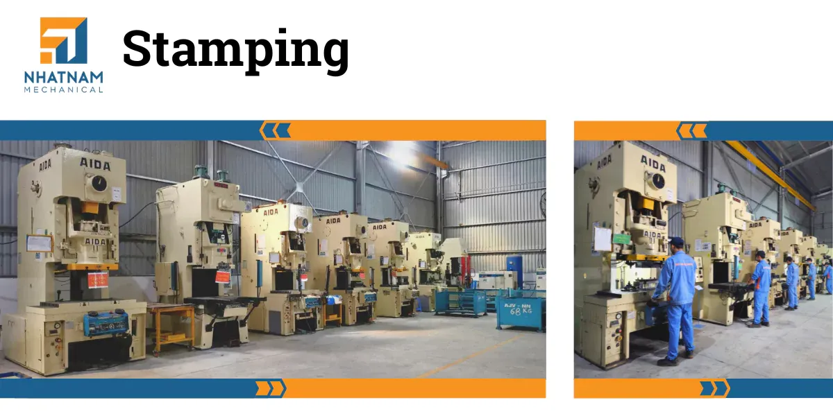 Usually done with a flat sheet of cold metal, Stamping, also known as pressing, is the process of creating a net shape out of metal using a tool and die surface. There are many other metal stamping processes such as embossing, bending, flanging, punching, etc. that we use to when working our customers. Other materials like polystyrene can be used. Depending on the need of the customer, we can use progressive dies that are typically fed material via coil of steel. After it is unwound, it is then leveled and fed into the press to a predetermined length. The entire process of feeding the metal stamping with coil of steel helps in significantly reducing production lead-times. All of the benefit of our customers.